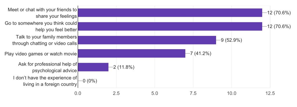 In which way do you think will make you feel better if you feel stressed or depressed when you are living in a foreign country?